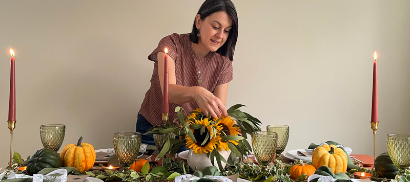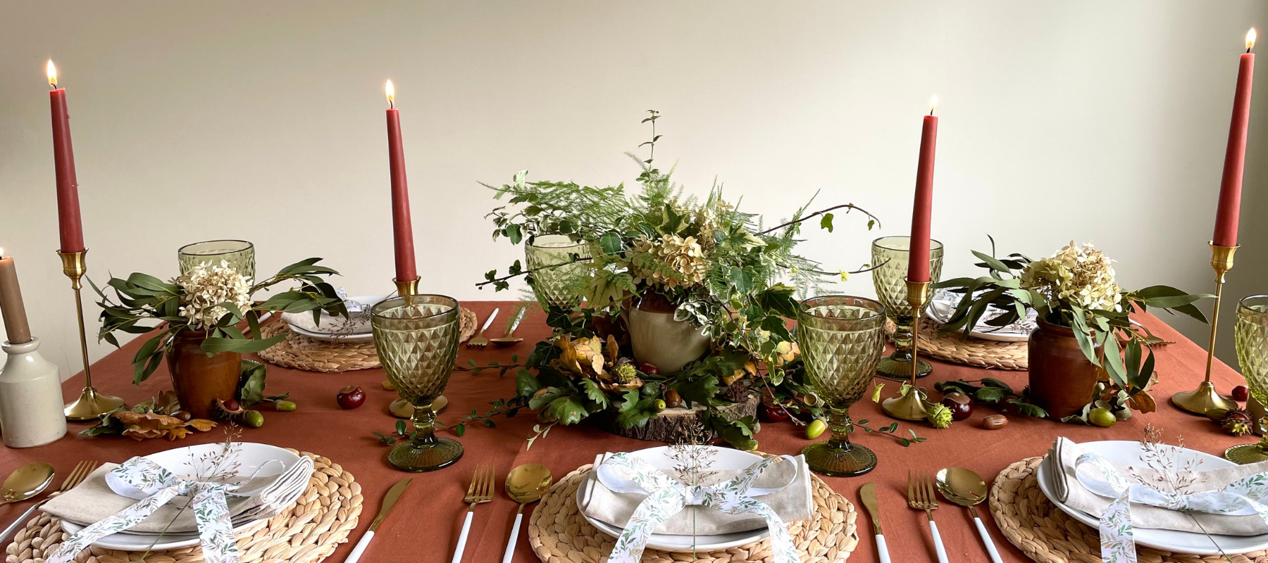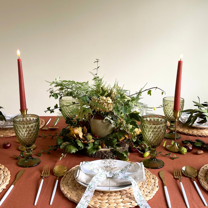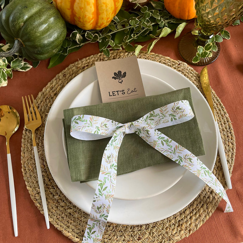 Easily tie your napkins with these pre-made botanical bows to complete your autumnal look.