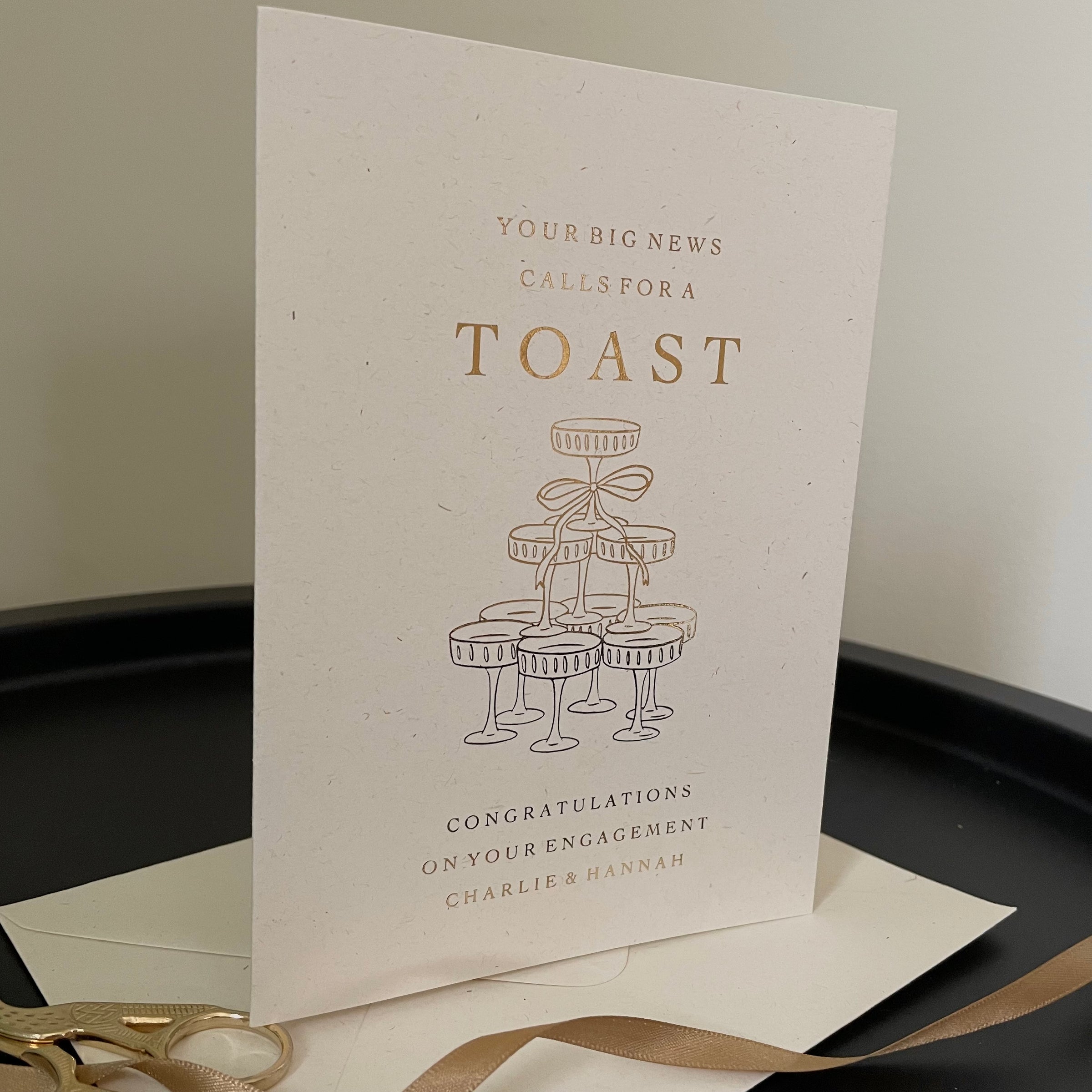 Send your congratulations to the happy couple to celebrate their big news of getting engaged with this stylish card.