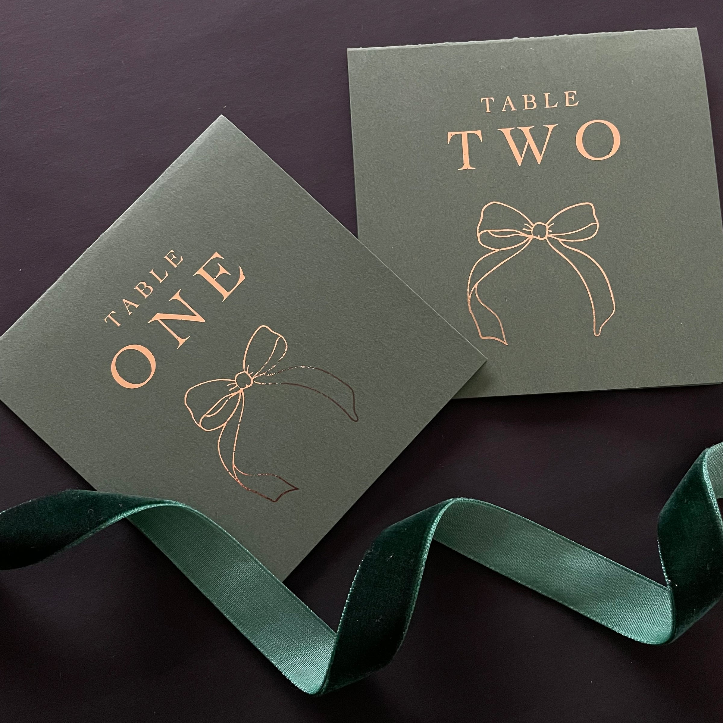 These folded table numbers are ready to place on your tablescapes among your decor. Perfect for a forest themed style, winter weddings or a festive Christmas dinner party.