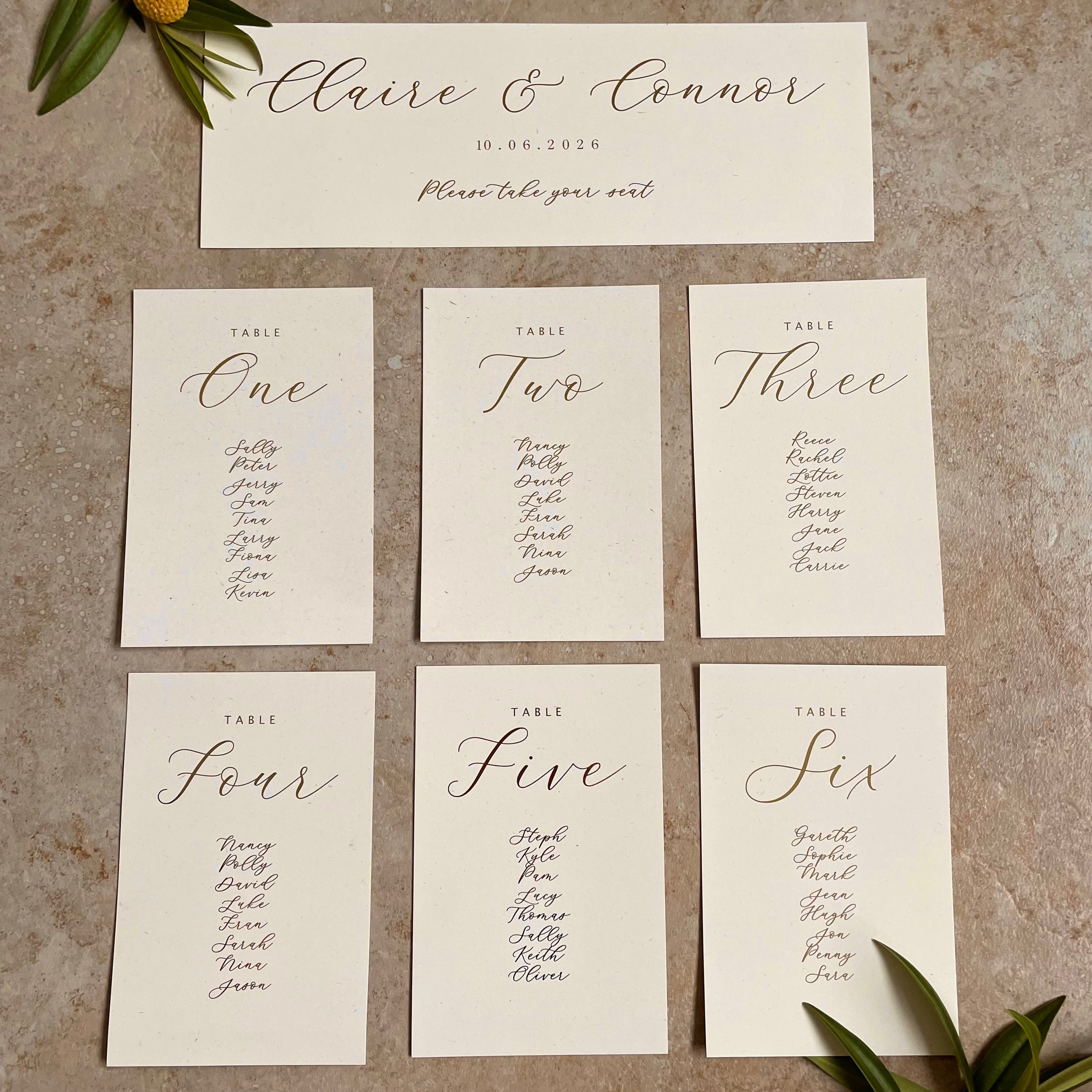 To personalise please fill in your details for the table plan.Proofs will be sent for the headers. You also change the table numbers to names if you desire.